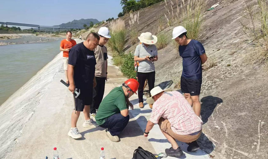 8月19日,公司工程項(xiàng)目部組織檢測(cè)單位對(duì)綿陽市安州區(qū)安昌河桑棗鎮(zhèn)段防洪治理工程面板馬道強(qiáng)度進(jìn)行復(fù)檢。區(qū)水利局質(zhì)安股、江河股參加。(素材來源:工程項(xiàng)目部 蔣犢)