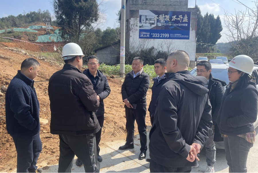 2月26日,區(qū)委常委、紀委書記、監(jiān)委主任汪勁宇帶隊調(diào)研綿陽市安州區(qū)秀水河堤防治理工程建設情況。(素材來源:工程項目部 何明鴻)