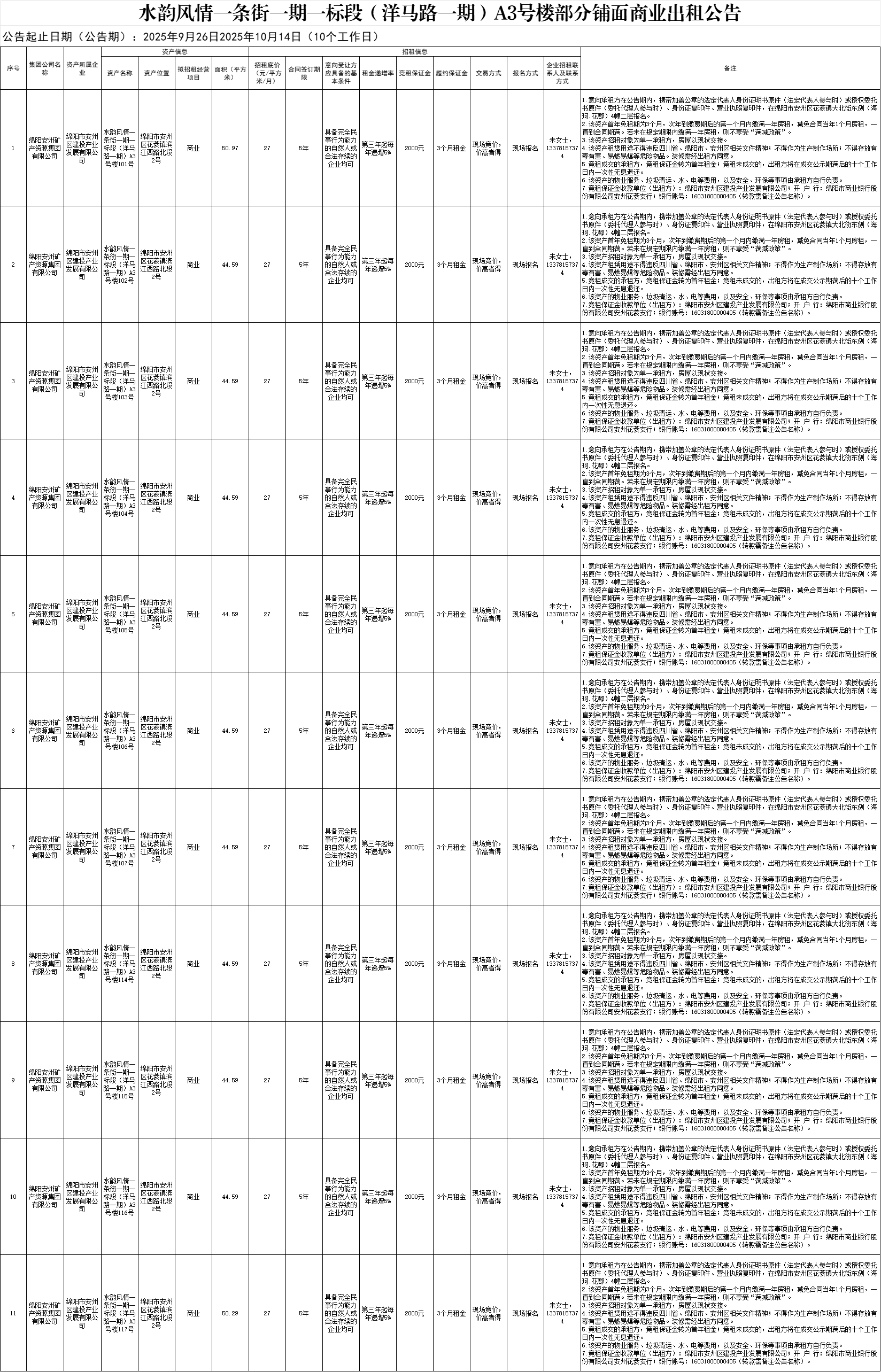 水韻風(fēng)情一條街一期一標(biāo)段(洋馬路一期)A3號樓部分鋪面商業(yè)出租公告